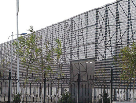 防風抑塵網是利用空氣動力(lì)學原理,按照實施現場環境風洞實驗結果加工成一定幾何形狀、開孔率和不同孔形組合擋風抑塵牆,使流通的(de)空氣(強風)從外通過牆(qiáng)體時,在牆體內側形成上、下幹(gàn)擾的氣流(liú)以達到外側(cè)強風,內側弱風,外側小風,內側無(wú)風的效果,從而防止粉(fěn)塵的飛揚。