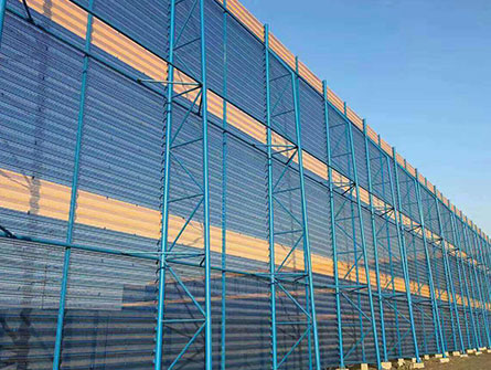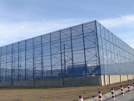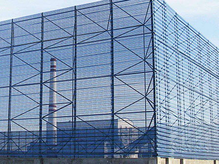 防風抑塵網是針對露天散料堆,起到揚塵汙染治理的作用,它被廣泛應用於(yú)港口碼頭、火力發電、煤礦、焦化、鋼鐵、洗煤、水泥(ní)等企業的煤場和料場(chǎng)揚塵汙(wū)染治理。該(gāi)產品(pǐn)利用(yòng)空(kōng)氣動力(lì)學原理(lǐ),對揚塵的源頭——風力進行有效控製,衰(shuāi)減來流風的動能,降低其(qí)起塵和攜塵能力,從而達到抑製揚塵的效果,綜合擋風抑塵(chén)率可達80%以上,已經作為揚塵汙染的主要(yào)治理技術加以應用(yòng)。